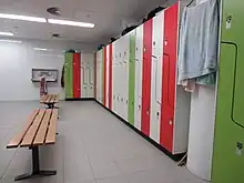 Most health clubs have a main workout area, which primarily consists of free weights including dumbbells and barbells and the stands and benches used with these items and exercise machines, which use gears, cables and other mechanisms to guide the user's exercise. This area often includes mirrors so that exercisers can monitor and maintain correct posture during their workout. A gym that predominantly or exclusively consists of free weights (dumbbells and barbells), as opposed to exercise machines, is sometimes referred to as a black-iron gym, after the traditional color of weight plates.[2]
