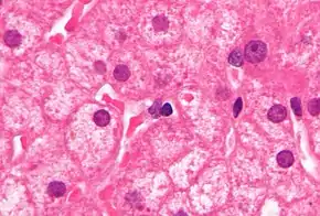 PCR tests have been developed to detect and measure the amount of HBV DNA, called the viral load, in clinical specimens. These tests are used to assess a person's infection status and to monitor treatment.[62] Individuals with high viral loads, characteristically have ground glass hepatocytes on biopsy.