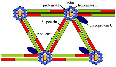 • EL1: Less common than spectrin mutations are band 4.1 mutations. Spectrin tetramers must bind to actin in order to create a proper cytoskeleton scaffold, and band 4.1 is an important protein involved in the stabilisation of the link between spectrin and actin. Similarly to the spectrin mutations, band 4.1 mutations cause a mild haemolytic anaemia in the heterozygous state, and a severe haemolytic disease in the homozygous state.