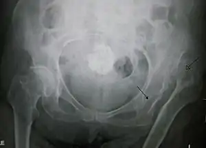 - ↑ Jacobsen S, Rømer L, Søballe K (2006). "The other hip in unilateral hip dysplasia". Clin. Orthop. Relat. Res. 446: 239–46. doi:10.1097/01.blo.0000201151.91206.50. PMID 16721954.