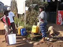 A group of people gathering around a communal tap in Johannesburg, South Africa