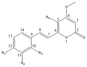 - ↑ Ligresti A, Villano R, Allarà M, Ujváry I, Di Marzo V (2012). "Kavalactones and the endocannabinoid system: the plant-derived yangonin is a novel CB₁ receptor ligand". Pharmacol. Res. 66 (2): 163–9. doi:10.1016/j.phrs.2012.04.003. PMID 22525682.