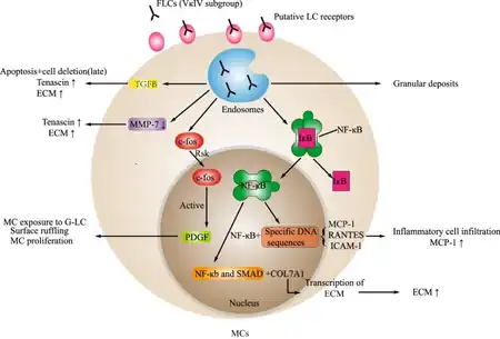 - ↑ Kattah, Andrea; Leung, Nelson (2019). "Light Chain Deposition Disease". Glomerulonephritis. Cham: Springer International Publishing. pp. 597–615. doi:10.1007/978-3-319-49379-4_39. ISBN 978-3-319-49378-7. S2CID 138289674.