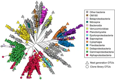 - ↑ Woyke, Tanja; Teeling, Hanno; Ivanova, Natalia N.; Huntemann, Marcel; Richter, Michael; Gloeckner, Frank Oliver; Boffelli, Dario; Anderson, Iain J.; Barry, Kerrie W. (26 October 2006). "Symbiosis insights through metagenomic analysis of a microbial consortium" (PDF). Nature. 443 (7114): 950–955. Bibcode:2006Natur.443..950W. doi:10.1038/nature05192. PMID 16980956. S2CID 140106758.