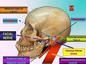 {{cite journal}}: Cite journal requires|journal=(help) - 1 2 3 Kynion, R (May 2018). "Mastoiditis". Pediatrics in review. 39 (5): 267–269. doi:10.1542/pir.2017-0128. PMID 29716974.