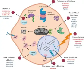 - ↑ Curran M, McKeage K (2009). "Bortezomib: A Review of its Use in Patients with Multiple Myeloma". Drugs. 69 (7): 859–888. doi:10.2165/00003495-200969070-00006. PMID 19441872. Archived from the original on 2011-10-08. Retrieved 2012-12-15.