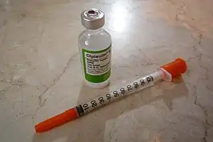 ![]() A vial of NPH insulin with insulin syringe | |