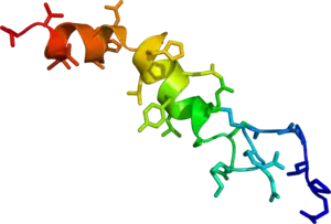 Orexin, otherwise known as hypocretin, is a neuropeptide that acts within the brain to regulate appetite and wakefulness as well as a number of other cognitive and physiological processes.[13][24][25] While there are billions of cells in the human brain, only 10,000–20,000 neurons secrete orexin peptides;[4] all of these neurons project out of the lateral hypothalamus.[13] Loss of these orexin-producing neurons causes narcolepsy and most individuals with narcolepsy have a reduced number of these neurons in their brains.[13][14][17]