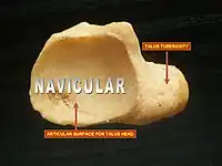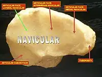 ![]() Bones of the human foot, with Navicularis labeled at upper left in image. | |