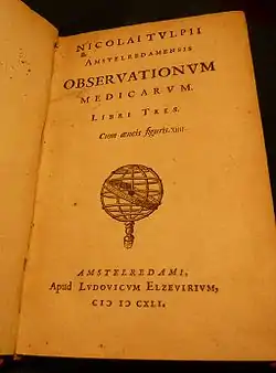 Title page from Prof. Tulp's 1641 book, published by Lodewijk Elzevir.