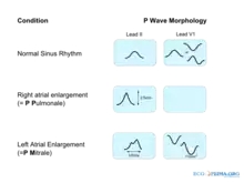 - ↑ Reeves WC, Hallahan W, Schwiter EJ, Ciotola TJ, Buonocore E, Davidson W (1981). "Two-dimensional echocardiographic assessment of electrocardiographic criteria for right atrial enlargement". Circulation. 64 (2): 387–391. doi:10.1161/01.CIR.64.2.387. PMID 6454512.