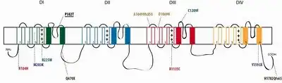 - ↑ Bouhours M, Luce S, Sternberg D, Willer J, Fontaine B, Tabti N (2005). "A1152D mutation of the Na+ channel causes paramyotonia congenita and emphasizes the role of DIII/S4-S5 linker in fast inactivation". J Physiol. 565 (Pt 2): 415–27. doi:10.1113/jphysiol.2004.081018. PMC 1464511. PMID 15790667.