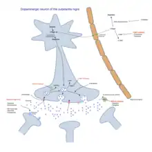 - ↑ Blum D, Torch S, Lambeng N, Nissou M, Benabid AL, Sadoul R, Verna JM (October 2001). "Molecular pathways involved in the neurotoxicity of 6-OHDA, dopamine and MPTP: contribution to the apoptotic theory in Parkinson's disease". Progress in Neurobiology. 65 (2): 135–72. doi:10.1016/S0301-0082(01)00003-X. PMID 11403877.