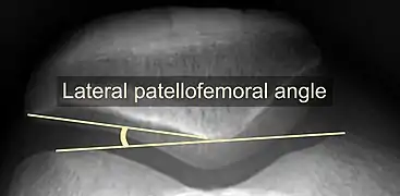 - The patellofemoral index is the ratio between the thickness of the medial joint space and the lateral joint space (L). With the knee 20° flexed, it should measure 1.6 or less.[16]