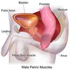 Pelvic floor exercise (PFE), also known as Kegel exercises, may improve the tone and function of the pelvic floor muscles, which is of particular benefit for women (and less commonly men) who experience stress urinary incontinence.[12][10] However, compliance with PFE programs often is poor,[12] PFE generally is ineffective for urinary incontinence unless performed with biofeedback and trained supervision,[10] and in severe cases it may have no benefit. Pelvic floor muscle tone may be estimated using a perineometer, which measures the pressure within the vagina.[13] Medication may also be used to improve continence.[14] In severe cases, surgery may be used to repair or even to reconstruct the pelvic floor.[14] One surgery which interrupts pelvic floor musculature in males is a radical prostatectomy. With the removal of the prostate, many males experience urinary incontinence post operation; pelvic floor exercises may be used to counteract this pre and post operation. Pre-operative pelvic floor exercising significantly decreases the prevalence of urinary incontinence post radical prostatectomy. [15] Prostatitis and prostatectomies are two contributors to erectile dysfunction; following a radical prostatectomy studies show that erectile dysfunction is improved by pelvic floor muscle training under the supervision of physical therapists certified in pelvic floor rehabilitation .[16]