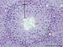{{cite book}}: CS1 maint: multiple names: authors list (link) - ↑ de Rooij, Dirk G; Grootegoed, J Anton (1998). "Spermatogonial stem cells". Current Opinion in Cell Biology. 10 (6): 694–701. doi:10.1016/s0955-0674(98)80109-9. PMID 9914171.