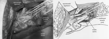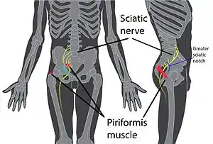 - ↑ Jawish RM, Assoum HA, Khamis CF (2010). "Anatomical, clinical and electrical observations in piriformis syndrome". Journal of Orthopaedic Surgery and Research. 5: 3. doi:10.1186/1749-799X-5-3. PMC 2828977. PMID 20180984.