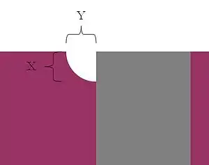 Recently, the lateral extent of this vertical bone loss around implants has been investigated—in other words, the thickness of bone loss that exists as a halo around the implant at its most coronal aspect—and has been termed the horizontal component of the biologic width (Y in the diagram at right), and research reveals that it is approximately 1.4 mm.[10]