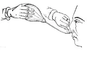 ![]() The Politzer maneuver, original illustration of 1863 | |