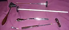 A reflex hammer is a medical instrument used by practitioners to test deep tendon reflexes. Testing for reflexes is an important part of the neurological physical examination in order to detect abnormalities in the central or peripheral nervous system.