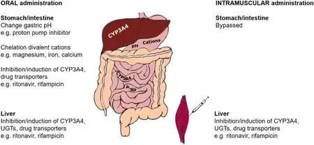 - ↑ Hodge, Daryl; Back, David J.; Gibbons, Sara; Khoo, Saye H.; Marzolini, Catia (1 July 2021). "Pharmacokinetics and Drug–Drug Interactions of Long-Acting Intramuscular Cabotegravir and Rilpivirine". Clinical Pharmacokinetics. 60 (7): 835–853. doi:10.1007/s40262-021-01005-1. ISSN 1179-1926.