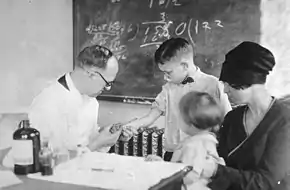 ![]() A boy receives an injection of diluted toxin for the Schick test in 1915. | |