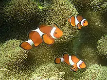 Teleost fishes are the only vertebrate lineage where sequential hermaphroditism occurs. In clownfish, smaller fish are male, and the dominant and largest fish in a group becomes female; when a dominant female is absent, then her partner changes sex from male to female. In many wrasses the opposite is true: the fish are initially female and become male when they reach a certain size.[65]