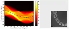 A helical CT beam trajectory is characterized by its pitch, which is equal to the table feed distance along the scan range over one gantry rotation divided by the section collimation.[9] When pitch is greater than 1, the radiation dose for a given axial field of view (FOV) is decreased compared to conventional CT. At high pitches there is, however, a trade-off in terms of noise and longitudinal resolution.[10]