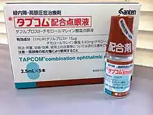 {{cite book}}: CS1 maint: unrecognized language (link) - ↑ Fukano Y, Kawazu K (August 2009). "Disposition and metabolism of a novel prostanoid antiglaucoma medication, tafluprost, following ocular administration to rats". Drug Metabolism and Disposition. 37 (8): 1622–34. doi:10.1124/dmd.108.024885. PMID 19477946. S2CID 12425702.