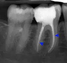 - ↑ Figini L, Lodi G, Gorni F, Gagliani M (December 1, 2016). "Single versus multiple visits for endodontic treatment of permanent teeth". The Cochrane Database of Systematic Reviews. 12 (5): CD005296. doi:10.1002/14651858.CD005296.pub3. PMC 6463951. PMID 27905673.