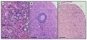 - ↑ Gravholt CH, Fedder J, Naeraa RW, Müller J (September 2000). "Occurrence of gonadoblastoma in females with Turner syndrome and Y chromosome material: a population study". The Journal of Clinical Endocrinology and Metabolism. 85 (9): 3199–3202. doi:10.1210/jcem.85.9.6800. PMID 10999808.