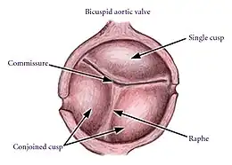 Approximately half of individuals with Turner syndrome have congenital heart defects. CHDs associated with Turner syndrome include bicuspid aortic valves (30%), coarctation of the aorta (15%), and abnormalities of the arteries in the head and neck.[14] A rare but potentially fatal complication of heart defects in Turner syndrome is aortic dissection, where the inner layer of the aorta tears open. Aortic dissection is six times as common in females with Turner syndrome as the general population and accounts for 8% of all deaths in the syndrome. The risk is substantially increased for individuals with bicuspid aortic valves, who make up 95% of patients with aortic dissection compared to 30% of all Turner's patients, and coarctation of the aorta, who make up 90% and 15% respectively.[33]