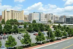 ![]() N.C. Memorial Hospital and N.C. Children's Hospital at UNC Hospitals, the main clinical teaching facilities for the UNC School of Medicine | |