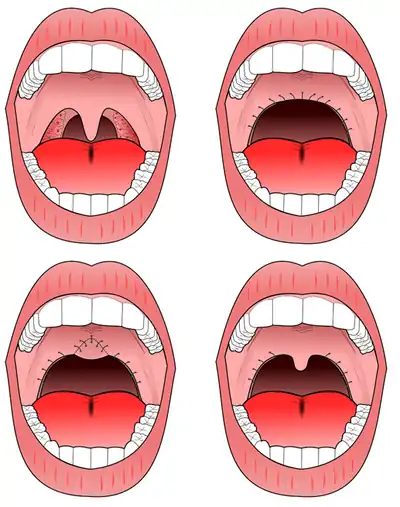 - uvulectomy, uvulopalatopharyngoplasty, tonsillectomy
