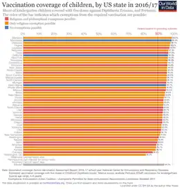 Vaccination rate by US state, including exemptions allowed by state in 2017