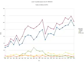 - ↑ "Estimate doubled for vCJD carriers in UK". BBC News. 2013-10-15. Archived from the original on 2014-02-10.