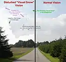 - ↑ MIchels, Lars; Traber, Ghislaine (21 September 2021). "Widespread White Matter Alterations in Patients With Visual Snow Syndrome". Frontiers in Neurology. 12: 723805. doi:10.3389/fneur.2021.723805. PMC 8490630. PMID 34621237.