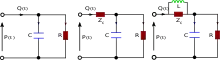 In the blood circulation, the passive elements in the circuit are assumed to represent elements in the cardiovascular system. The resistor, R, represents the total peripheral resistance and the capacitor, C, represents total arterial compliance.[7]