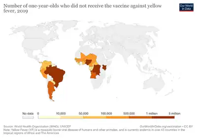 - ↑ "What are the risks of dying from having the yellow fever vaccine?". 11 January 2019. Archived from the original on 12 October 2019. Retrieved 12 October 2019.