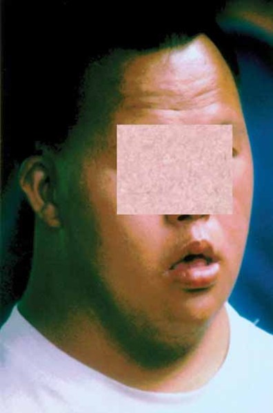 In addition to short stature, people with 3-M syndrome have a triangle-shaped face with a broad, prominent forehead (frontal bossing) and a pointed chin; the middle of the face is less prominent (hypoplastic midface). Other common features include large ears, full eyebrows, an upturned nose with a fleshy tip, a long area between the nose and mouth (philtrum), a prominent mouth, and full lips.