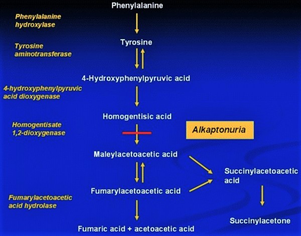 - Introne WJ, Perry M, Chen M. Alkaptonuria. 2003 May 9 [updated 2021 Jun 10]. In: Adam MP, Feldman J, Mirzaa GM, Pagon RA, Wallace SE, Amemiya A, editors. GeneReviews(R) [Internet]. Seattle (WA): University of Washington, Seattle; 1993-2024. Available from http://www.ncbi.nlm.nih.gov/books/NBK1454/ Citation on PubMed