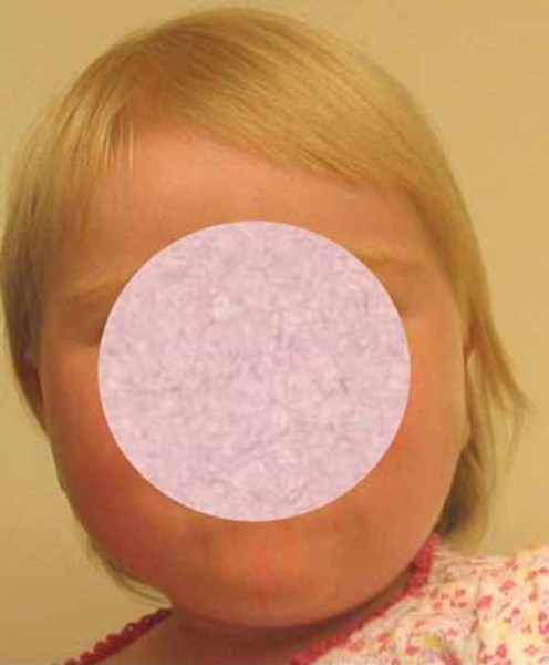 The name of this condition, which comes from the Greek words for happy ("gelios") and nature ("physis"), is derived from the good-natured facial appearance seen in most affected individuals. The distinctive facial features associated with this condition include a round face with full cheeks, a small nose with upturned nostrils, a broad nasal bridge, a thin upper lip, upturned corners of the mouth, and a flat area between the upper lip and the nose (philtrum).