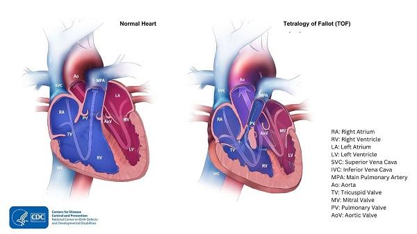 Different congenital heart defects can occur in MED13L syndrome. Affected individuals may have transposition of the great arteries, which is abnormal positioning of the large blood vessel that distributes blood from the heart to the rest of the body (aorta) and the artery that carries blood from the heart to the lungs (the pulmonary artery). Other congenital heart defects in MED13L syndrome include a hole between the two lower chambers of the heart (ventricular septal defect), a hole between the two upper chambers of the heart (patent foramen ovale), or a particular combination of heart defects known as tetralogy of Fallot.