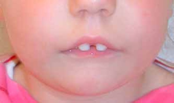 Most people with MED13L syndrome have unusual facial features that consist of a depressed nasal bridge, a bulbous nasal tip, straight eyebrows, outside corners of the eyes that point upward (upslanting palpebral fissures), full cheeks, and an open mouth. Other facial features that sometimes occur are a pronounced double curve of the upper lip (Cupid's bow), and a deep space between the nose and upper lip (philtrum).