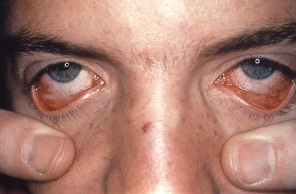 SJS/TEN often begins with a fever and flu-like symptoms. Within a few days, the skin begins to blister and peel, forming very painful raw areas called erosions that resemble a severe hot-water burn. The skin erosions usually start on the face and chest before spreading to other parts of the body. In most affected individuals, the condition also damages the mucous membranes, including the lining of the mouth and the airways, which can cause trouble with swallowing and breathing. The painful blistering can also affect the urinary tract and genitals. SJS/TEN often affects the eyes as well, causing irritation and redness of the conjunctiva, which are the mucous membranes that protect the white part of the eye and line the eyelids, and damage to the clear front covering of the eye (the cornea).