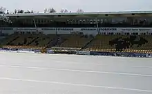 Åråsen Stadion has a capacity of 12,250 spectators, all seated.[14] The stadium consists of four single-tier stands.[15] The western stand is the main stand, with the upper section consisting of luxury boxes and club seating for 700 people.[15][16] For sponsorship reasons it is known as the Lillestrøm Torv Stand, after a local shopping center. The southern part of the East Stand houses the Kanarifansen, the official LSK supporters' group, while the northern part has unreserved seating. The South Stand is named for Romerikes Blad, the local newspaper, while the North Stand is named for Legea, a sportswear manufacturer.[15] The latter is used for away fans.[17] The stadium is owned by Åråsen Stadion AS, which is again wholly owned by Lillestrøm SK. Operation of the venue's commercial properties is done by Åråsen Eiendom AS, which is owned 75 percent by Åråsen Stadion and 25 percent by Lillestrømbanken.[12] The stadium is within walking distance of both the town center of Lillestrøm and Lillestrøm Station.[18] Lillestrøm SK hold their training sessions in the nearby Lillestrøm Stadion and LSK-Hallen.[19][20]
