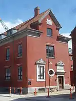 Østerbrohuset (No. 101) is a community centre with sport facilities, mainly used for badminton and basketball, a small café and facilities for local associations. The building is a former tramway depot, Århusgade Remise, built in 1901 to design by Vilhelm Friederichsen for De Kjøbenhavnske Sporveje ("Copenhagen Tramways"). The building is now used as a community centre with sport facilities, mainly used for badminton and basketball, a small café and facilities for local associations.