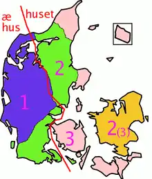 In western and southern Jutish dialects of Danish, æ is also the proclitic definite article: æ hus (the house), as opposed to Standard Danish and all other Nordic varieties which have enclitic definite articles (Danish, Swedish, Norwegian: huset; Icelandic, Faroese: húsið [the house]).