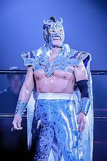 In 1991, he signed with the Mexican Consejo Mundial de Lucha Libre (CMLL) promotion. In CMLL, he adopted the Último Dragón mask and persona. "Último Dragón", which means "Last Dragon" in Spanish, was initially a gimmick that saw Asai claiming to be the last student taught by legendary martial artist Bruce Lee, whose nickname was "The Dragon".[5] The gimmick was later dropped, but the name remained. Late in 1992, Misteriosito was turned into "Último Dragoncito", a Mini-Estrella version of Asai. During the same period, Asai also signed with the Japanese WAR promotion, and due to co-promoting, he was able to wrestle for NJPW. In Japan, he became IWGP Junior heavyweight champion twice, and in Mexico, he held various titles. In later years, he wrestled for AAA.[6]