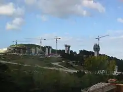 The viaduct was designed by Janez Koželj and Marjan Pipenbaher, who was also its constructor.[1] The construction work began in 2001 and the viaduct was opened for traffic on 23 September 2004.[2] When almost completed in May 2004, it served as a stage of the Giro d'Italia race.[3]